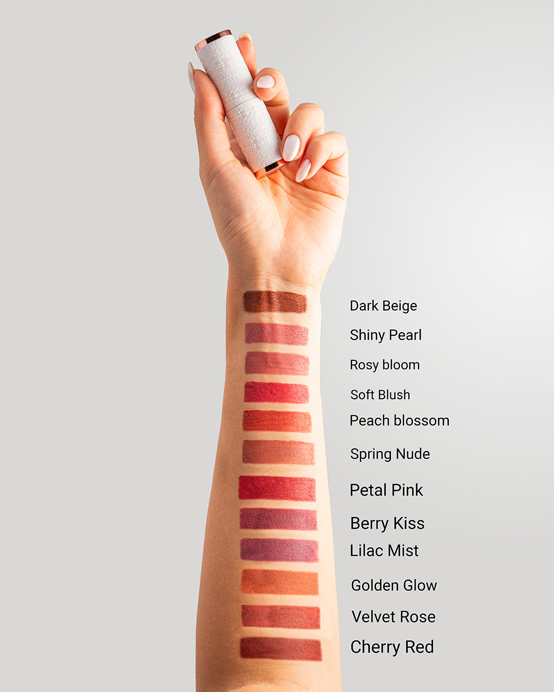 The Sakura lipsticks offer a chic semi-matte finish—neither flat nor glossy, just perfectly smooth and modern.